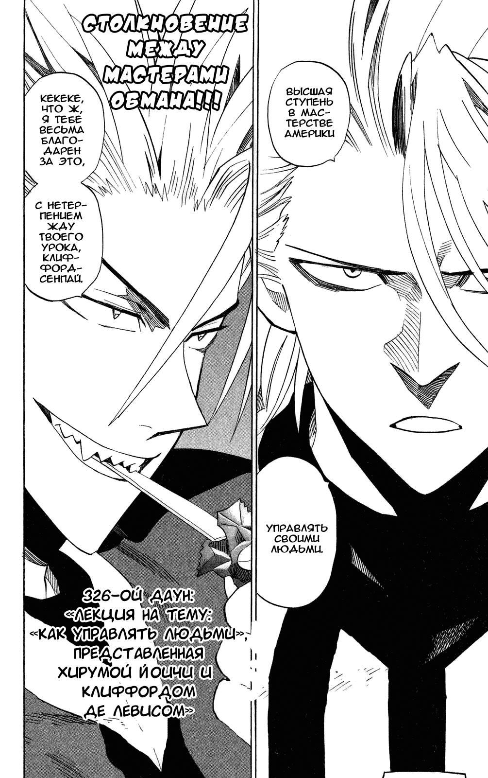 Eyeshield 21 :: Том 37. 326-й даун: Лекция на тему: "Как управлять людьми", представленная Хирумой Йоичи и Клиффордом де Левисом